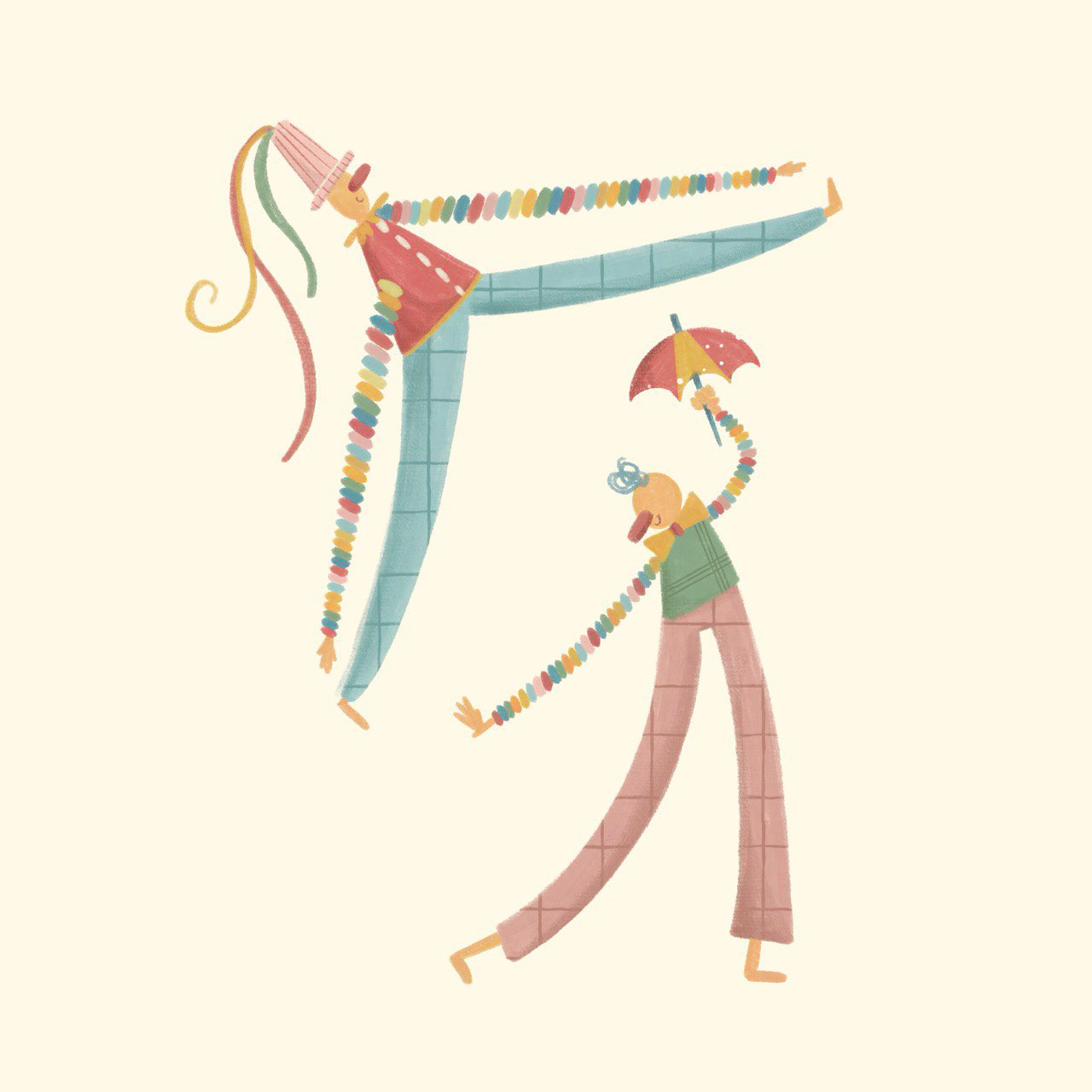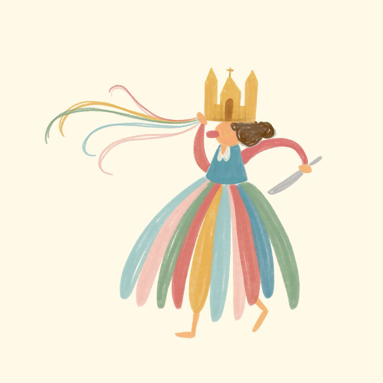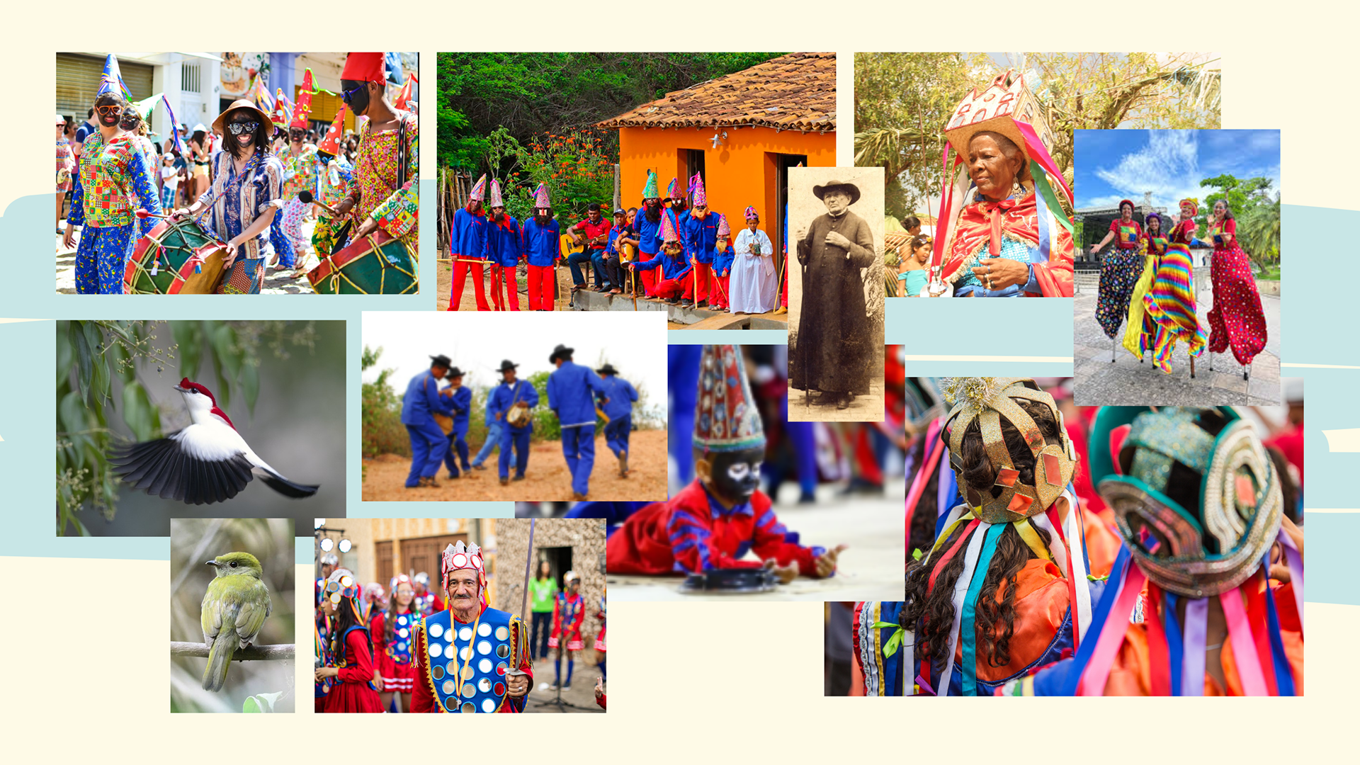 EN This digital artwork was inspired by the culture of the Brazilian Cariri region, specifically that of Ceará. This culture is marked by a rich folk tradition and strong religiosity, especially surrounding Padre Cícero and the pilgrimages of Juazeiro do Norte. This culture manifests itself in diverse forms, such as music (baião, forró, repente, coco), dances (reisado, maracatu), crafts (leather, clay, embroidery, wood) and cordel. Here it has been transformed into a children's illustrated set full of color and meaning.
